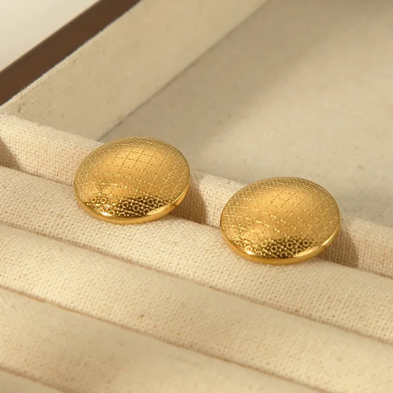 A quiet homage to time-honored craftsmanship, these domed studs exude the gentle dignity of antique adornment. Forged in durable stainless steel and enriched with a sumptuous gold plating, each earring reveals an intricate latticework of delicate embossing—patterns that whisper of heirlooms treasured across generations.